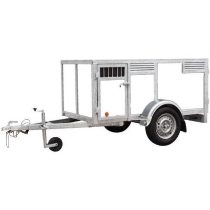 La Remorque 2 chiens-gris est conçue pour le transport de deux chiens. Timon en V. Roue jockey incluse. Feux à LED non. Position des roues extérieures. Documentation technique fournie. Idéale pour les propriétaires de chiens souhaitant voyager en toute sécurité. Aération et compartiments adaptés.